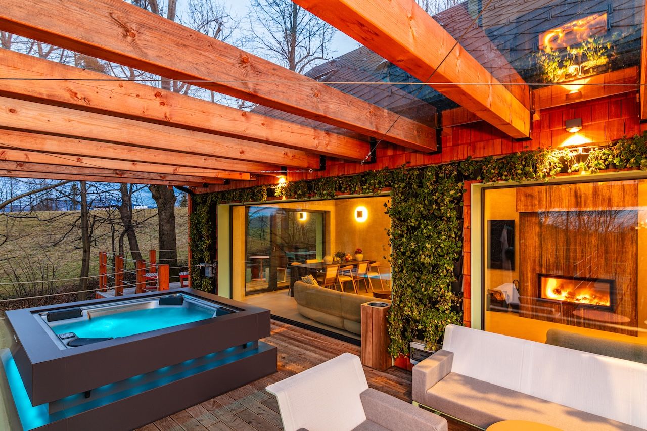 Snažili jsme se vytvořit krásná místa s vířivkou, některá s venkovním kinem, kde si určitě odpočinete s rodinou nebo přáteli. Jsou to místa, kde nemusíte řešit práci, telefony a další shon, prostě jen tak si být.